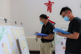 翰墨怡乐,影藏幸福。在讲解员的带领下,各位评委老师仔细欣赏作品,详细了解作品的内容和创作理念,对整个作品进行综合审评并进行打分。评委们首先观看硬笔书法的两个主题的作品并进行高度评价:“书法作为一种较为特殊的艺术形式,能够准确的表达出共青团的百年征程,共青团历经百年沧桑而青春焕发,依靠的就是始终扎根广大青年,希望各位青年继续奋斗,为团贡献力量。”随后评委老师相继参观了照片、软笔、画作和手工剪纸。现场观众也融入其中,开始沉下心去慢慢欣赏作品。