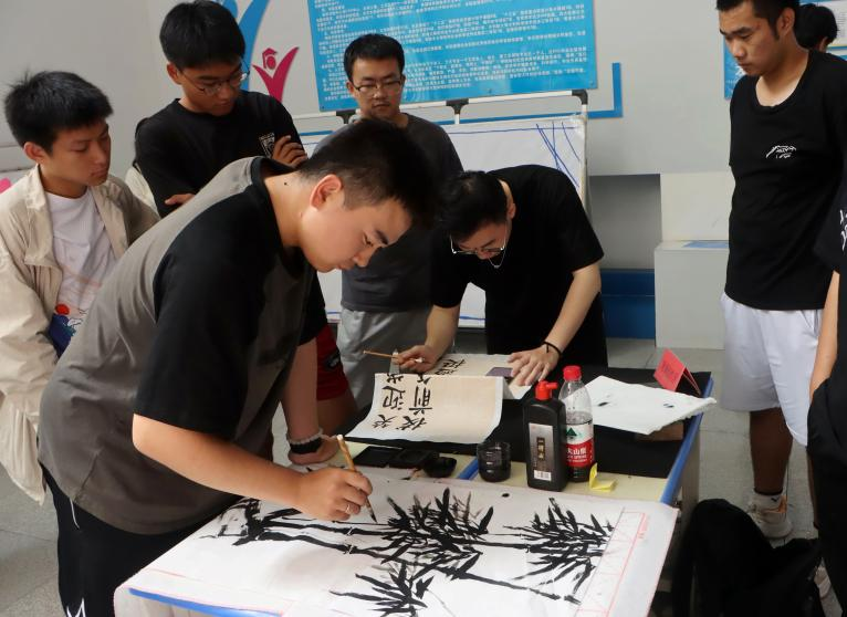 墨香致远,意韵悠长。书画展吸引了众多师生前来观展,现场气氛热烈高涨。展览场地,更设有现场创作区,同学们即兴挥毫,现场创作书画艺术作品,黑墨白纸间感受笔墨丹青的独特魅力,浸润的是优秀胡杨文化,续写的是青年人对祖国的美好祝愿。