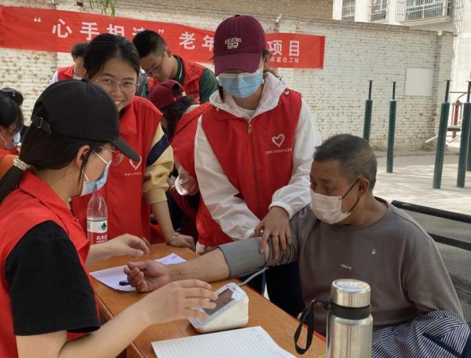 老吾老,以及人之老,关爱孝敬老人自古便是中华民族传统美德,为发扬此优良传统,服务民众,塔里木大学水利与建筑工程晨光志愿者团携手“医路同行”志愿者团于2023年4月15日在金银川路街道社区开展为老人量血压活动,普及健康知识,高血压的危害,培养关注健康的意识和自我保健技能等。