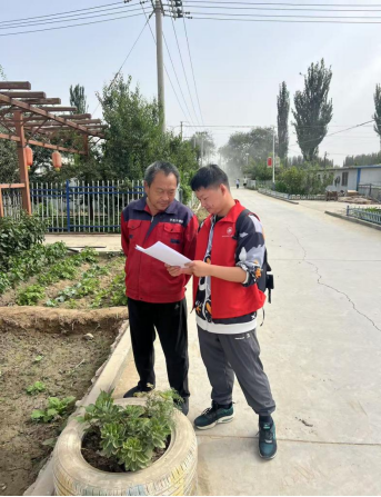 此次实践聚焦南疆 "生态脆弱区 + 多民族聚居区 + 兵团垦区" 的三元空间特征,紧扣乡村振兴战略 "产业兴旺、生态宜居、乡风文明、治理有效、生活富裕"20 字要求,团队兵分多路,通过问卷发放、入户访谈、现场测绘等方式,系统收集村庄概况、产业布局、基础设施、建筑风貌等基础数据。在阿拉尔十一团花桥镇一连“百连示范工程”标杆,团队成员认真地与当地村民进行深入民生交谈.