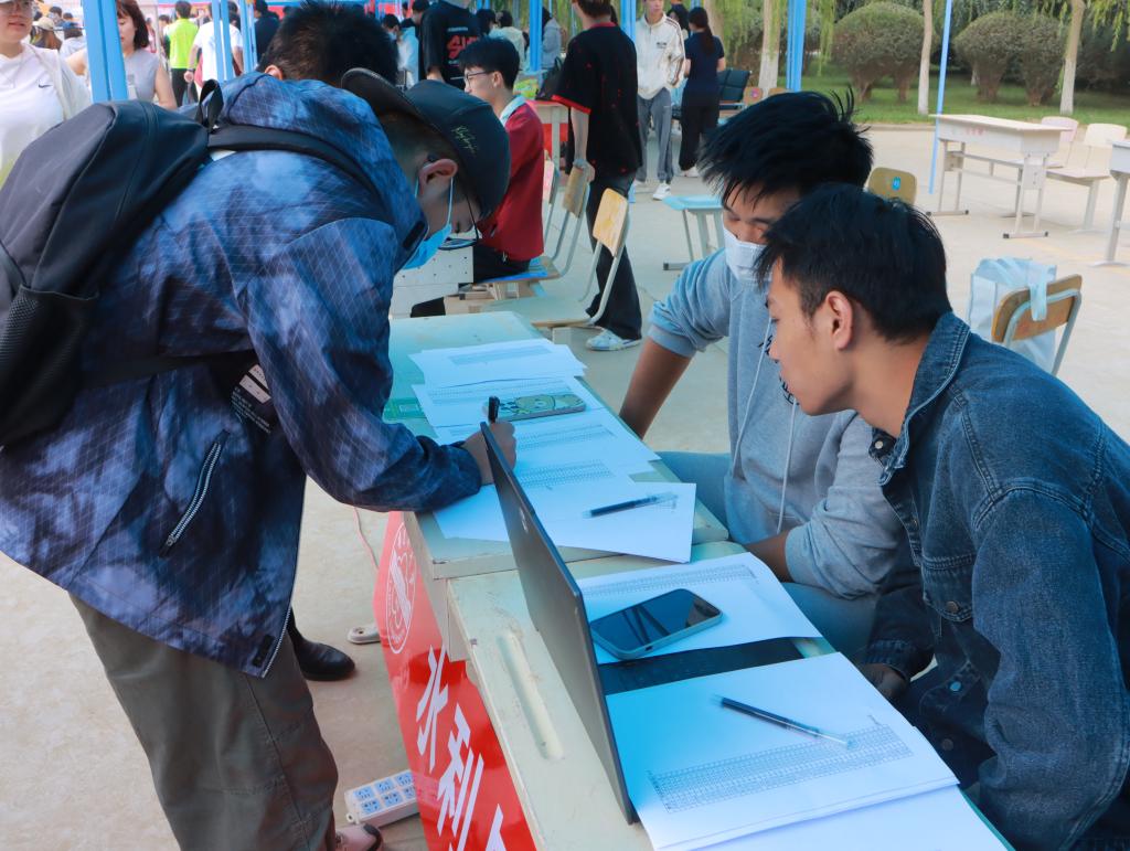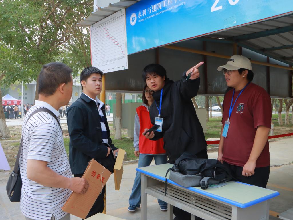 为迎接来自各省的9000余名新生,学院前期统筹、多轮推演,将“贴心、匠心、安心”贯穿迎新全链条:校门上空高悬“水润万物·筑梦阿拉尔”巨幅横幅;校内主干步道铺设“蓝黄水滴”地标,自报到点延伸至各公寓,实现“目不转睛即可到站”;“一站式”服务大厅提前三日开放,学籍核验、资助咨询、校园卡领取等八类业务集成办理;后勤服务中心调派4辆新能源观光车、12辆平板行李车循环运转,确保“行李不离地、新生不往返”;学院还携手校友企业,为新生送上“胡杨种子纪念徽”与“数字孪生塔河”立体明信片,寓意“扎根边疆、滴水汇川”。