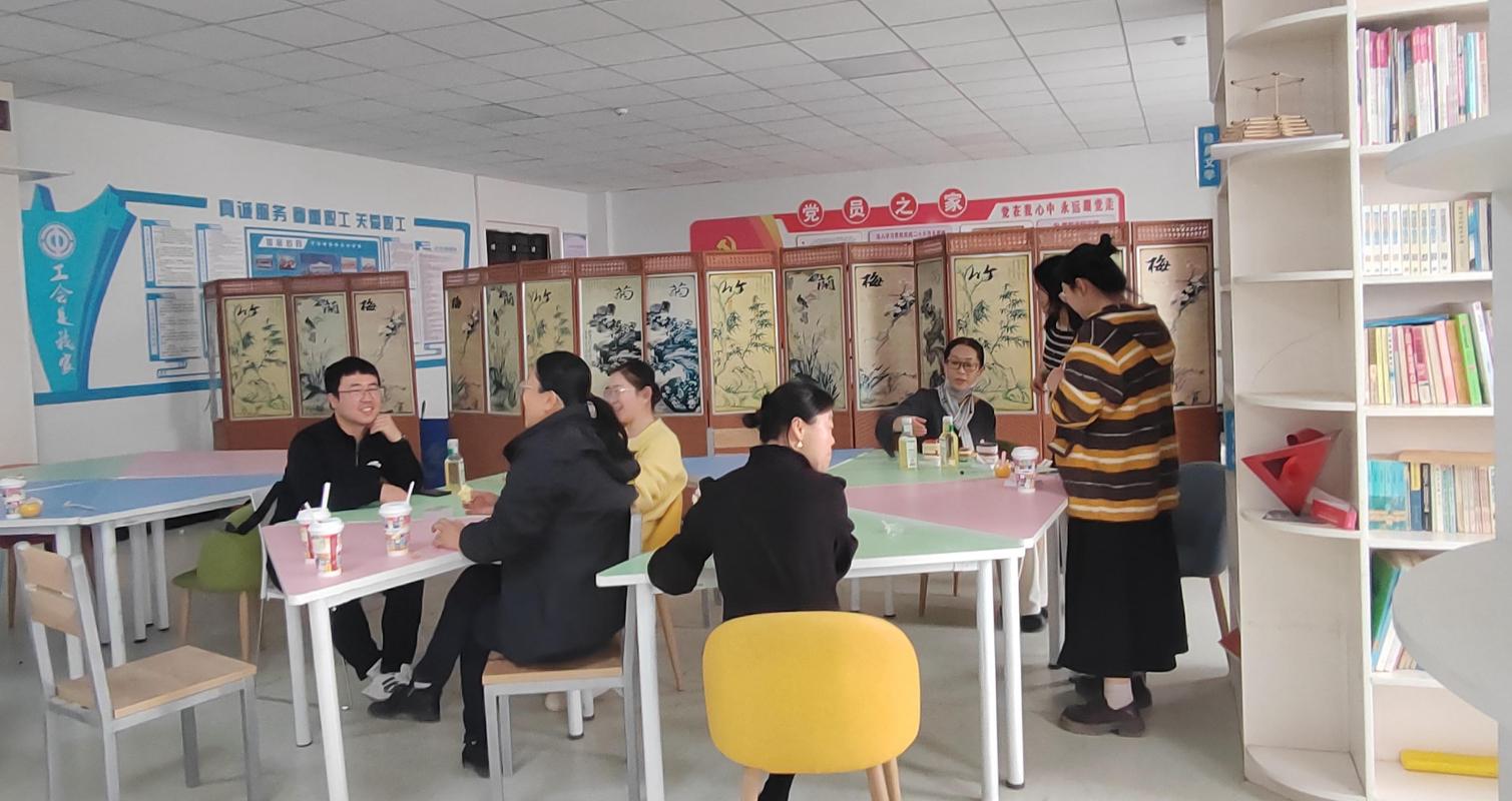 活动当天,工会活动室被装点得温馨雅致。甜品台上,精致的蛋糕、香甜的点心与新鲜水果错落摆放;茶饮区,暖意融融的花茶、果茶散发着淡淡清香,为春日增添一抹温柔底色。活动现场还设置了休闲阅读角,摆放着各类书籍报刊,供教职工们在闲暇时静心品读;轻松棋牌区则成为大家互动交流的欢乐场所,笑声与交谈声交织成一片。