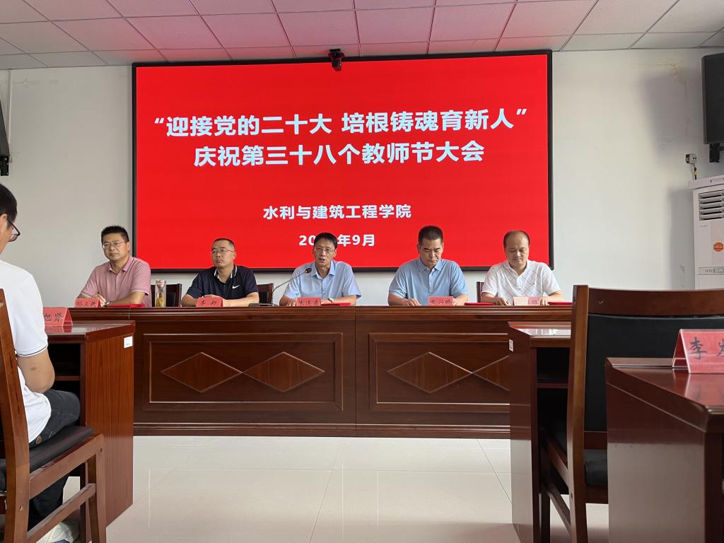 9月8日下午,水利与建筑工程学院在工科实训大楼一号会议室召开优秀教师表彰暨庆祝第38个教师节大会。学院党委书记朱连勇,党委副书记、院长王兴鹏,副书记李新,副院长黄维雄、孙三民以及优秀教师及教师代表参加会议。