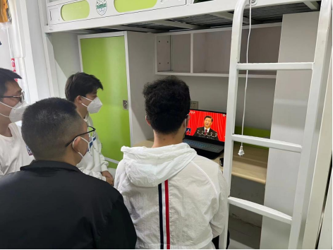 2022年10月16日上午,水利工程系学生党员在学生宿舍集中收看党的二十大开幕直播盛况。