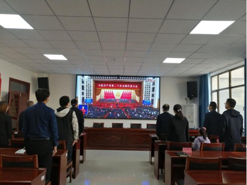 2022年10月16日上午,水利与建筑工程学院党员干部在工科实训楼1号会议室集中收看党的二十大开幕直播盛况。