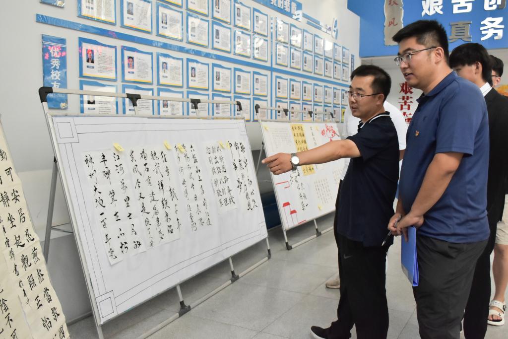 为深入推进党史学习教育,不断加强全院师生的爱国情怀,大力传承和弘扬各民族优秀传统文化。6月9日,水利与建筑工程学院在工科实训楼一楼大厅举行水木墨影-“学百年党史,汇团结伟力”主题文学、书法、绘画、手工、摄影作品展活动。学院党委副书记李新、学生办公室主任王小云、团委副书记李同玺、部分辅导员及学生干部代表现场观看作品展并对各类作品进行打分。