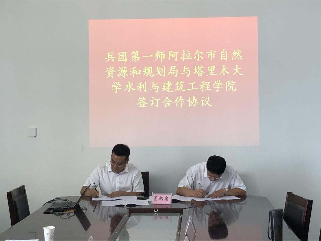 会上,朱连勇同志介绍我院的基本情况,商钢锋同志介绍第一师自然资源和规划局的基本情况。交流期间,双方深入洽谈交流合作等事宜,并签订了《塔里木大学与兵团第一师阿拉尔市自然资源与规划局人才培养与交流合作协议》,双方搭建了未来三年的交流合作框架,希望充分利用各自优势和资源,通过多种形式开展全面合作,人才培养、事业发展相互促进、共同进步,努力实现“院局合作、才事双赢”的目标。