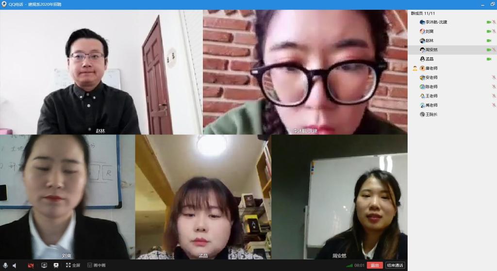 按照国家、自治区和兵团关于新型冠状病毒肺炎疫情防控工作要求,结合《2020年塔里木大学面向内地公开招聘教师简章》和《关于做好2020年教师公开招聘工作的补充通知》工作安排,为有效减少人员聚集,保障公开招聘应聘人员及工作人员安全和健康,做好疫情防控期间教师招聘工作,建筑规划系于2020年3月28日上午10点整,对第一批通过初审的5名应聘者采取线上QQ视频的方式进行面试(试讲)工作。