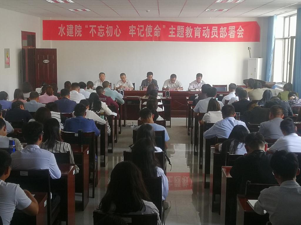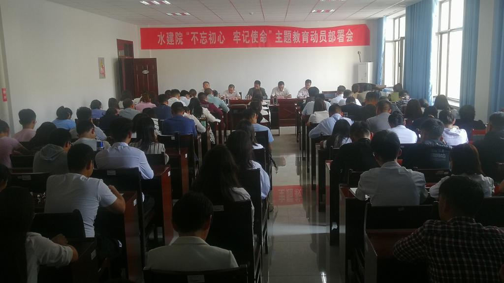 为认真学习贯彻习近平新时代中国特色社会主义思想,切实增强开展主题教育的政治自觉和行动自觉。9月18日下午,水利与建筑工程学院于工科实训大楼二楼会议室开展“牢记使命,不忘初心”主题教育动员部署会。塔里木大学党委宣传部副部长杨宝仁,水建院党委书记熊仁次、副院长贺兴宏、副院长陈华清及水建院全体师生党员参与此次活动。动员部署会由我院党委副书记李新主持。