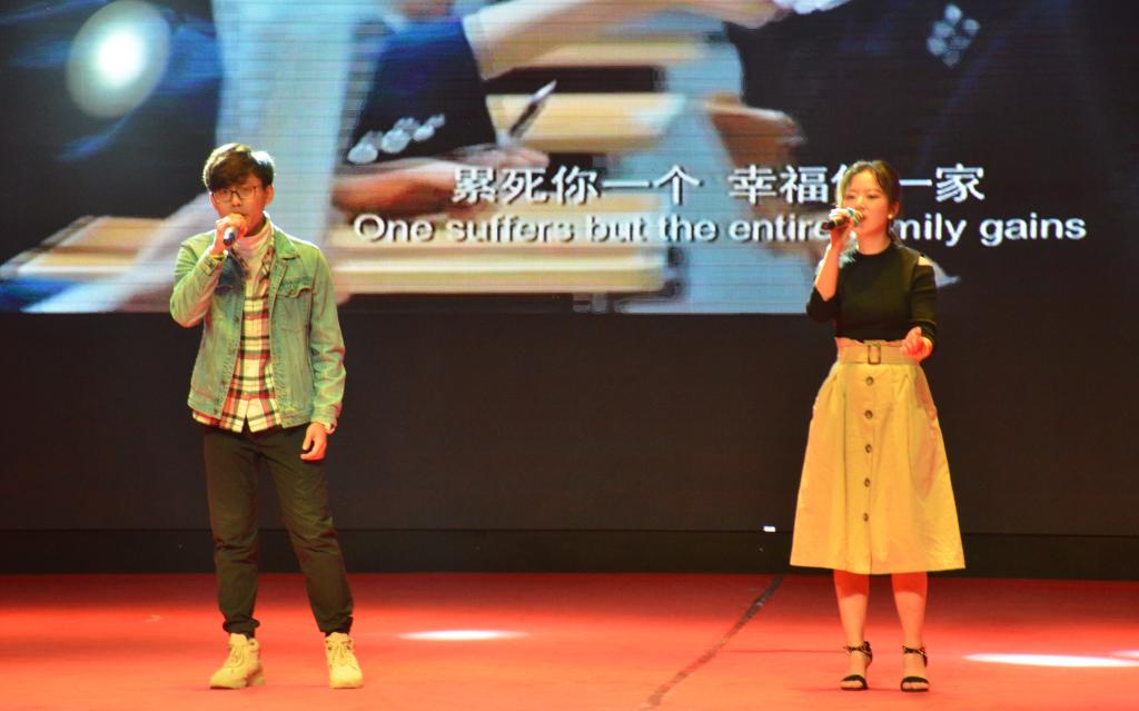 晚会中,一首由2010年毕业校友所唱的《唱脸谱》,将现场气氛瞬间点燃,全场掌声雷动,随之开场舞《响亮节目》的舞者们伴着节拍踩着鼓点步入舞台,整个晚会拉开了帷幕。本次主题文艺晚会共有十一个节目,分为上下两个篇章。上篇章名为“忆往昔峥嵘岁月,庆祖国七十华诞”演员们通过朗诵、舞蹈、歌曲等6个节目歌颂了祖国坎坷且光辉的历史征程。下篇章名为“胡杨青年心向党,南疆建功新时代”演员们用视频、小品、民族舞等5个节目向观众表达了水建学子奋发图强、扎根南疆的决心。