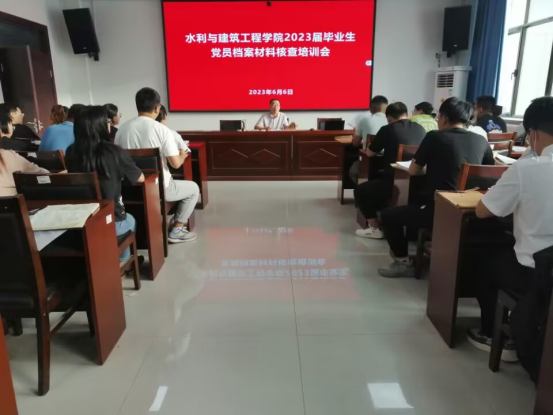 为深入开展学习贯彻习近平新时代中国特色社会主义思想主题教育,并确保党员档案材料的完整与规范,使毕业生党员顺利转接党组织关系,6月6日晚,水利与建筑工程学院在工科实训楼1号会议室召开2023届毕业生党员档案材料核查培训会,各学生党支部书记及支委参会。