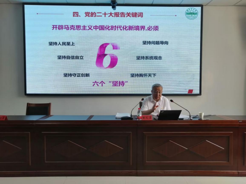 为深入开展主题教育,6月21日下午,校党委常委、副校长曲义勇为发展规划处、财务处、资产管理处、基建处和水利与建筑工程学院党员讲授“加快推进兵团特点南疆特色高水平大学建设”专题党课。