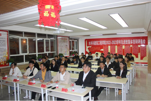 为充分发挥先进典型的示范作用,促进优良学风建设,弘扬班集体正能量与凝聚力,激励广大学生勤奋学习,全面发展,9月22日,水利与建筑工程学院在西七二楼会议室举行“扬奋进之帆·创共进之美”2022-2023学年先进班集体答辩评选会。会议邀请到了食品科学与工程学院团委副书记许库尔老师,化工院辅导员李宁老师担任评委,15个班40余名学生代表参加。