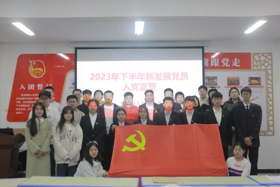 随后,为扎实推进党员发展工作,教育引导新发展党员增强党性意识和党性修养,进一步激发党员踔厉奋发、担当实干的先锋模范作用,水利工程系学生党支部为2023年下半年预备党员举行了入党宣誓仪式,仪式在庄严肃穆的《国际歌》中拉开序幕。王健健同志宣读了新发展党员名单,接着由老党员为新党员佩戴党徽。全体党员在党支部书记王健健同志的带领下,面向党旗,高举右拳,庄严宣誓。