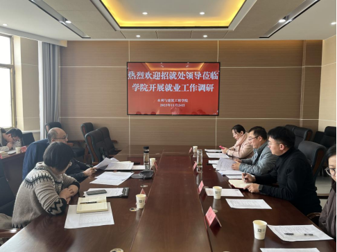 近日,学校招生就业处处长胡松林、副处长孔黎莅临我院开展就业工作调研会,就水利与建筑工程学院就业工作情况进行调研指导。学院党委副书记李新、2023届和2024届毕业生班主任代表、就业辅导员参加会议。会议由李新主持,在工科实训楼二号会议室召开。