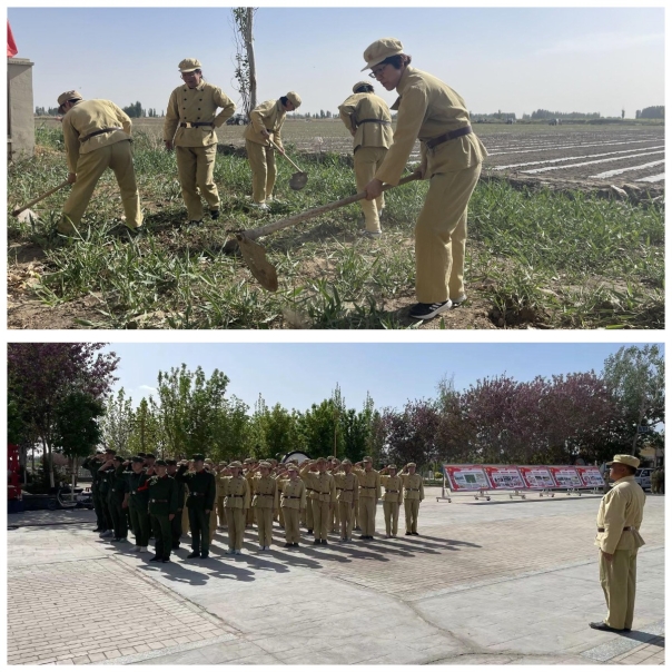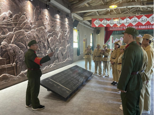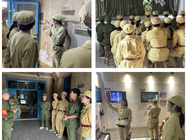 在十六团老一营旧址,党员同志们身着军装,体验了军垦战士在艰苦环境下仍坚持军事训练、投身生产建设的场景。怀着崇敬的心情参观营部办公楼,各类老物件,以及复原的旧貌,感受深处垦荒的历史过程和老一辈的垦荒精神。