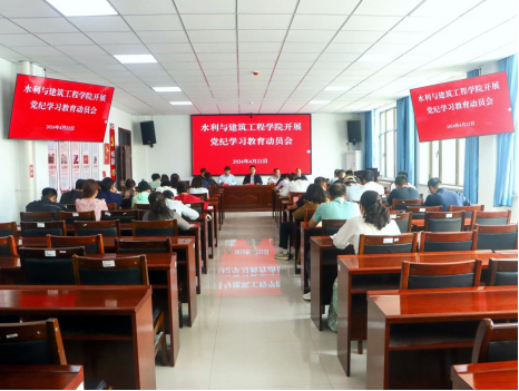 4月22日,水利与建筑工程学院召开学习《中国共产党纪律处分条例》动员大会,会议强调广大党员干部要始终保持“务实”“廉洁”“简朴”的工作作风,主题教育动员大会在工科实训大楼一号会议室召开,学院党委副书记李新主持会议,学院领导、各党总支、党支部书记、支部委员参加会议。