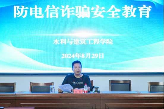 为进一步遏制校园网络诈骗发展态势,切实提高学生对网络诈骗的应对能力,8月29日晚,水利与建筑工程学院在工科实训楼一号会议室召开了电信反诈宣传会议。此次活动旨在增强师生防范电信网络诈骗的意识与能力,构建安全和谐的校园环境。会议由水建院党委副书记李林主讲,全体班主任参加。