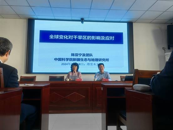 张爱萍书记首先表达了对陈亚宁研究员在百忙之中抽空来访并分享其宝贵的研究成果表示热烈的欢迎和衷心的感谢。她指出,陈亚宁研究员的到来无疑为塔里木大学的科研事业注入了新的活力与灵感。