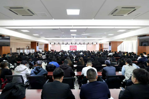 学院领导、师生代表听取宣讲报告。宣讲会在校本部图书馆六楼报告厅举行。(文/苏航 摄/赵建博)